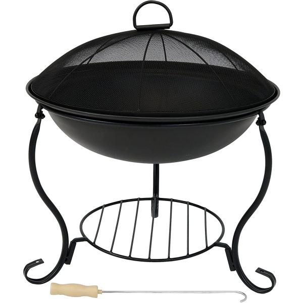 Easy to assemble: Firepit includes brazier with stand, poker and spark screen.